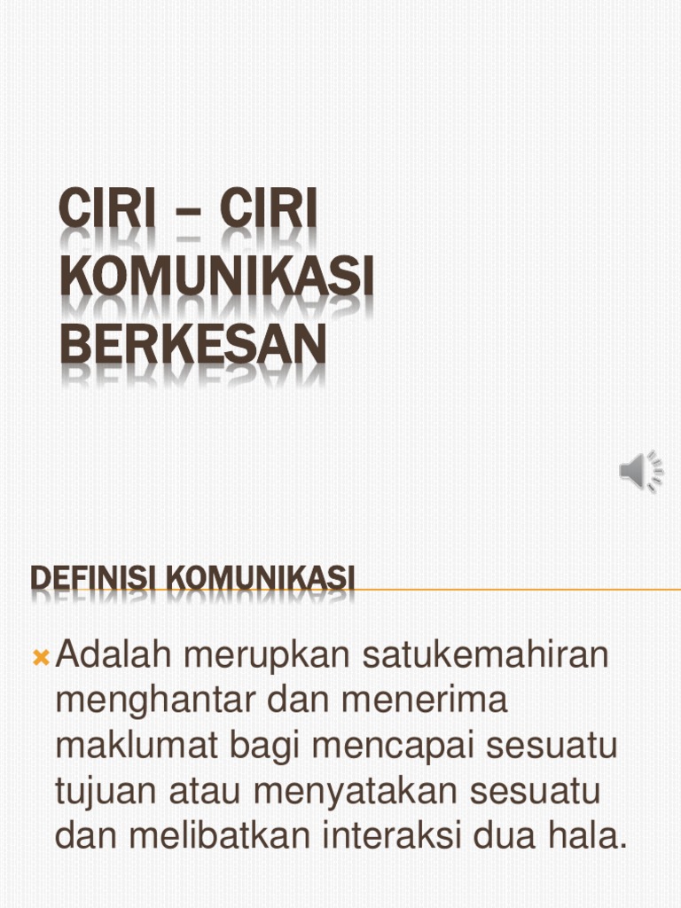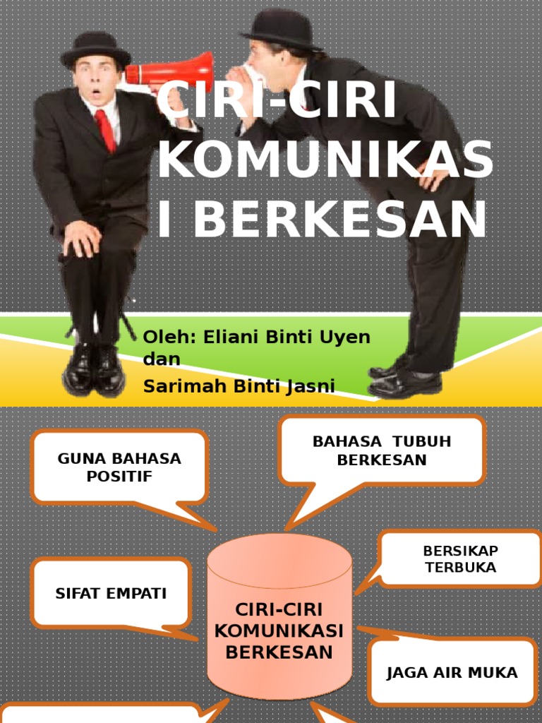 BAHASA MELAYU KONTEKSTUALCIRI-CIRI KOMUNIKASI BERKESANKUMPULAN 71. More from Jalalludin Ibrahim. 1O PENGENALAN 20 CIRI-CIRI KOMUNIKATOR YANG BAIK EFEKTIF DAN EFISIEN 30 CIRI-CIRI UNTUK MENJADI PENDENGAR YANG BERKESAN 40 KOMUNIKASI DARI.
